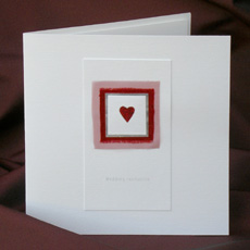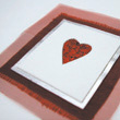 Layers of dupion silk, organza and metalic tissue paper. Uppermost card layer contains a cut out heart revealing glitter beneath.
