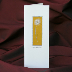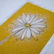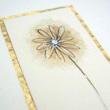A hand-painted daisy flower decorated with metaillic ink sitting on layers of coloured and metallic paper.