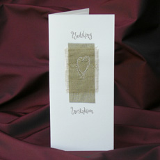 A delicate design using white and metallic tissue paper as a backdrop for a simple debossed square containing a gold heart.