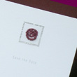 Originally a bespoke commission this design consists of a tissue paper rose on layers of card, coloured paper or silk, metallic tissue paper, organza and natural paper. Save the Date card also pictured.